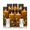 Flameless Candles with Embedded Star String, Battery Operated LED Pillar Candles with Timer and Remote Control,Home Decorating for Ambiance, Set of 7 (D 2.3"×H 5" 5" 6" 6" 7" 7" 7")(Grey)